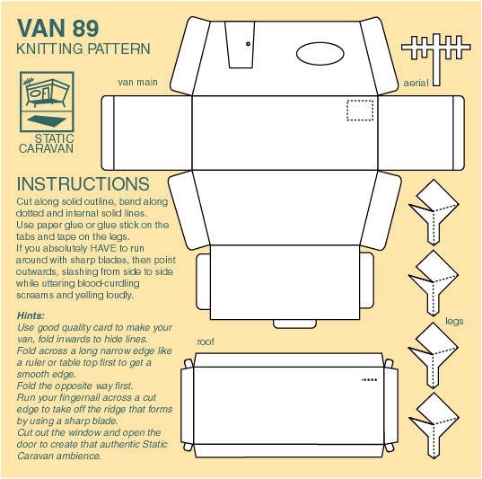 The caravan available for nowt by clicking the links below, downloading the file, printing it out and assembling the van in your own unique style.